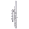 Model szkolny, posrebrzany, głowa Altus Z ze srebrną płytką ustnikową i kominkiem, otwarte klapy, E-mechanika, wysunięte G (offset), stopka C. W komplecie futerał, pokrowiec oraz akcesoria czyszczące.