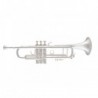 Model szkolny, posrebrzany ze srebrną płytką ustnikową i kominkiem, otwarte klapy, E-mechanika, wysunięte G (offset), stopka C. W komplecie futerał, pokrowiec, zatyczki do klap oraz akcesoria czyszczące.