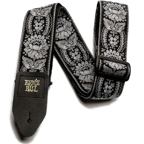 Pasek do gitary wykonany z trwałej i wygodnej polipropylenowej plecionki. Seria Polypro. Zakończenia skórzane. Regulowana długość od 104 cm do 182 cm. Wzór żakardowy: Silver Orleans Jacquard Strap.