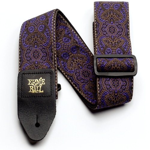Pasek do gitary wykonany z trwałej i wygodnej polipropylenowej plecionki. Seria Polypro. Zakończenia skórzane. Regulowana długość od 104 cm do 182 cm. Wzór żakardowy: Purple Paisley Jacquard Strap.