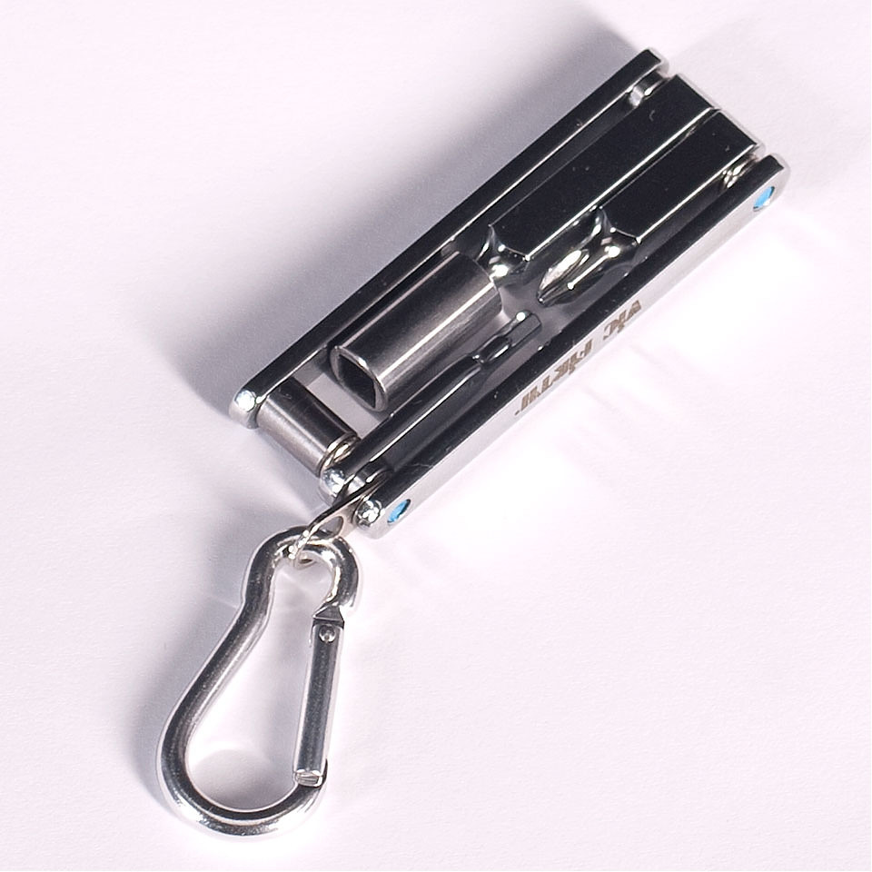 Wielofunkcyjny klucz perkusyjny na skład którego składa się: Imbus 3mm, imbus 4mm, śrubokręt krzyżak, klucz perkusyjny oraz karabińczyk.