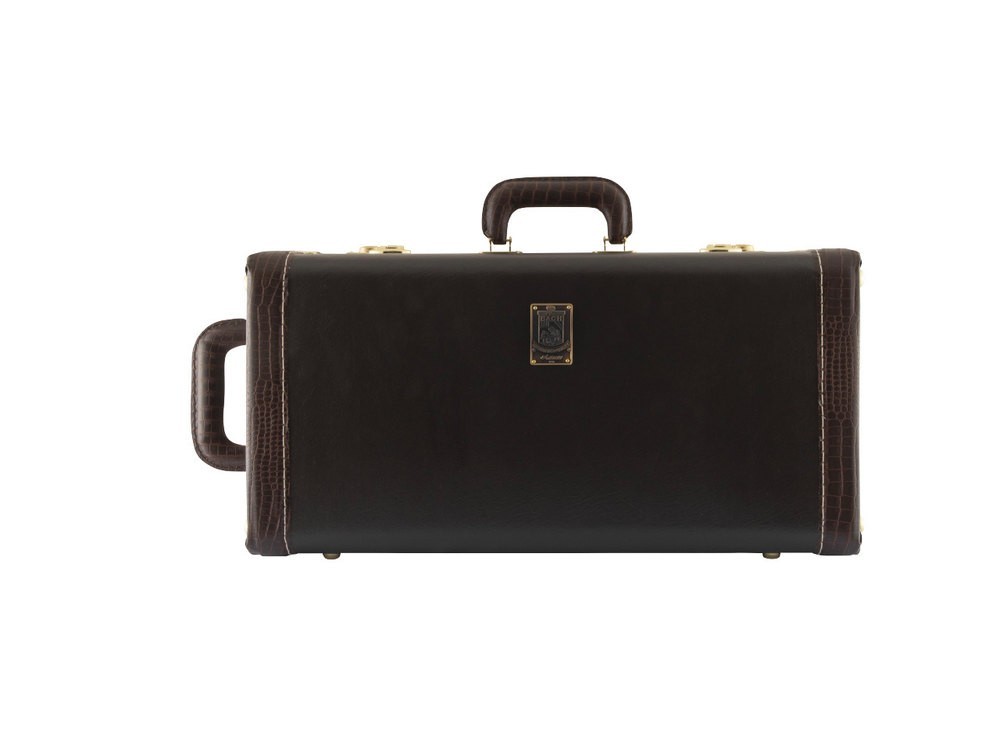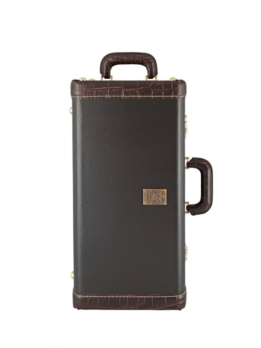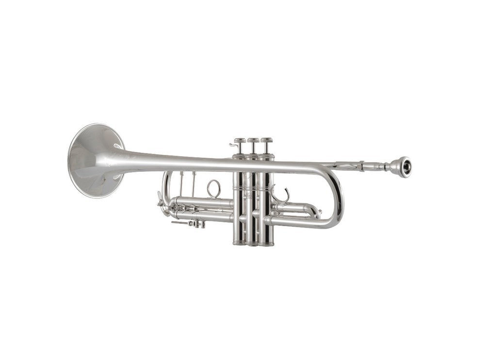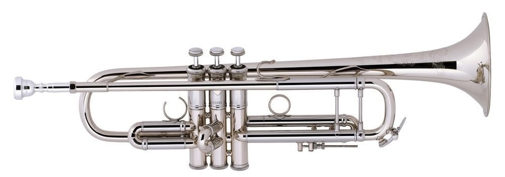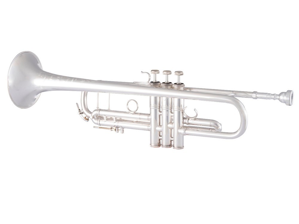 Menzura ML .459'' = 11,66 mm; Roztrąb z mosiądzu: Ø 4 13/16" = 122,24 mm; Jednoczęściowy ręcznie kuty roztrąb z płaską krawędzią czary; Powiększone okucia przy rurce ustnika; Przedłużony drążek "głębokiego F" na 3 wentylu; Dodatkowo 2 komplety prowadzeń wentyli (plastik / metal); Wentyle monelowe, otwarty pierścień na kciuk, grawura deluxe; Bez ustnika; Podwójny kufer prostokątny Deluxe C190DBL; Mosiądz posrebrzany;