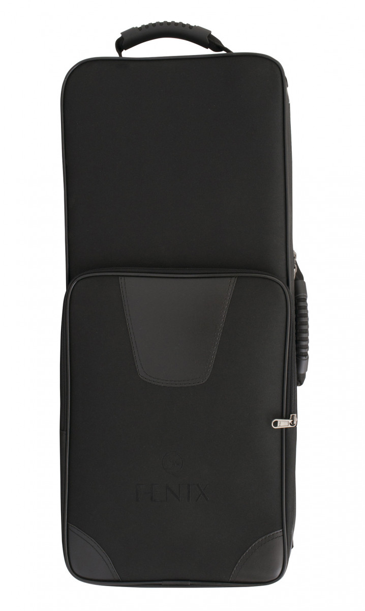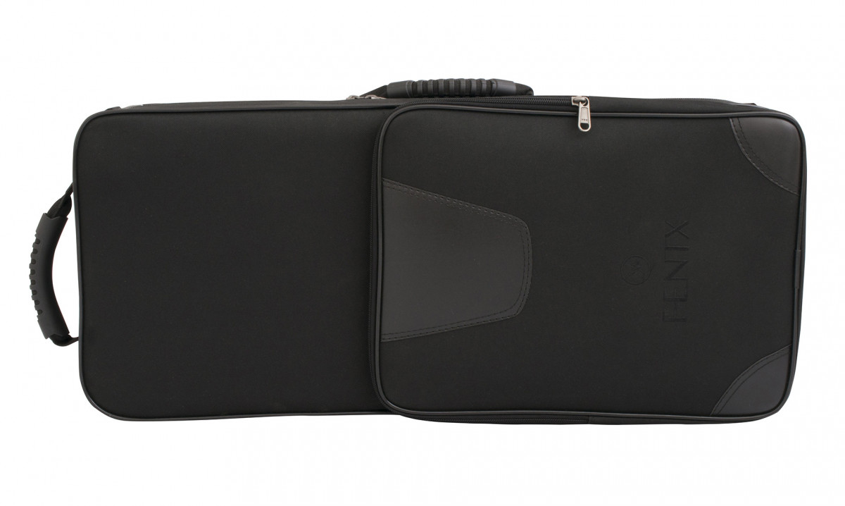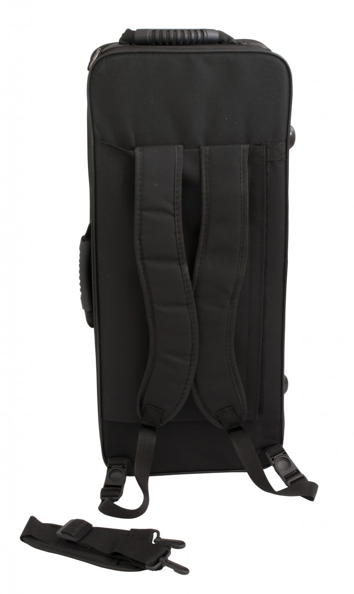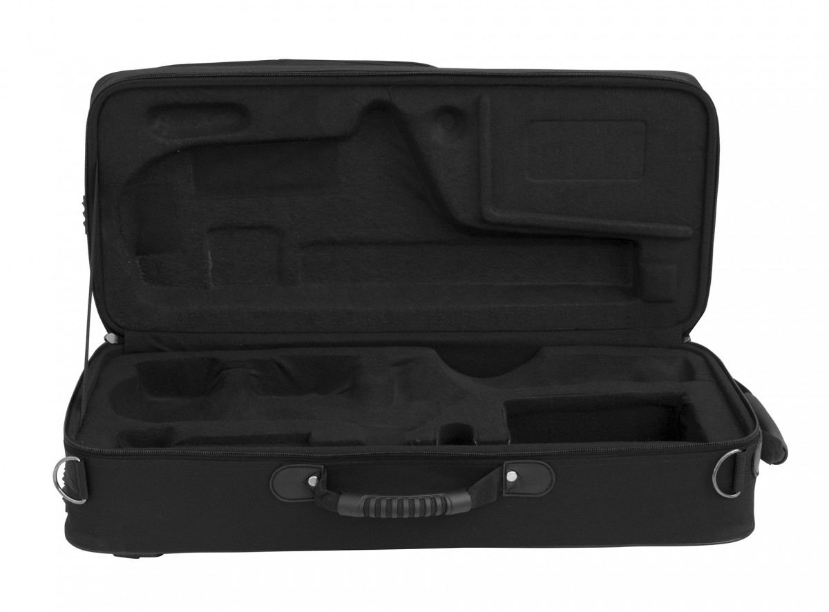 Wysokiej jakości, lekki futerał na saksofon altowy z szelkami do noszenia na ramionach w kolorze czarnym.