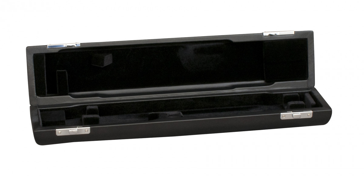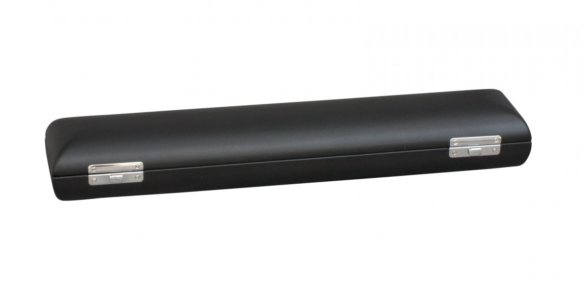 Elegancki, twardy futerał w czarnym kolorze z ekoskóry. Pasuje do większości fletów z prostą głową i ze stopką H.