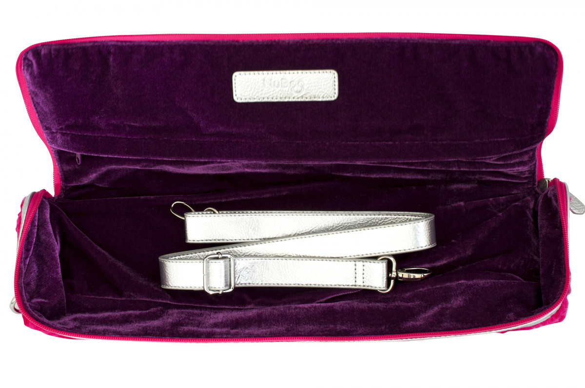 Wnętrze wykończone fioletowym aksamitem.