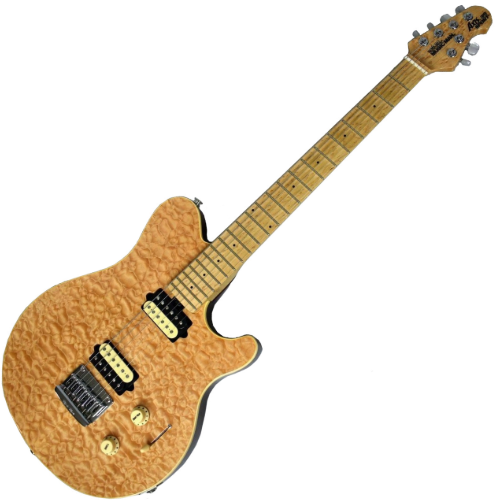 Gitara elektryczna 6-strunowa. Model: Axis Super Sport. Korpus: lipa. Top: klon wzorzysty (wykończenie wysoki połysk). Gryf: klon. Podstrunnica: selecjonowany klon (promień: 10" (25.4 cm). Główka w kolorze korpusu. Szerokość napierwszsym progu: 1-5/8" (41.3 mm). Szerkość na ostatnim progu: 2-3/16" (55.6 mm). Ilość progów: High profile, medium. Kolory tył i boki: natural - połysk. Skala instrumentu: 25-1/2" (64.8 cm). Mostek: stały (Standard - Music Man® strings-thru-the-body). Binding korpusu: Cream. Maszynki blokowane: Tuning Machines Schaller M6-IND. Łączenie gryfu z korpusem: Neck Attachment 5 bolts. Potencjometry: 1 x volume, 1 x tone. Przetworniki w ukladzie HH -2 DiMarzio custom humbucking. Przełącznik przetworników: 5-pozycyjny. Struny Ernie Ball: 9p-11p-16p-24w-32w-42w (RPS 9 Slinkys #2239). Kolor: naturalny. Wykończenie: wysoki połysk. Twardy futerał w zestawie.