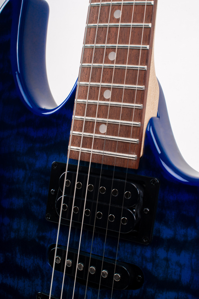 Gitara GRX70QA posiada gryf z klonu, podstrunnicę z jatoby i płytę wierzchnią z pikowanego klonu o fakturze słoja na korpusie z topoli. Ponadto gitara wyposażona jest w przetworniki Infinity RS/R H-S-H oraz mostek tremolo T106.