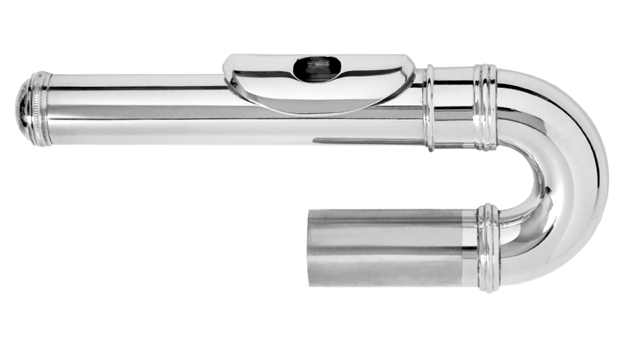 Posrebrzana, zakrzywiona głowa do fletu poprzecznego.