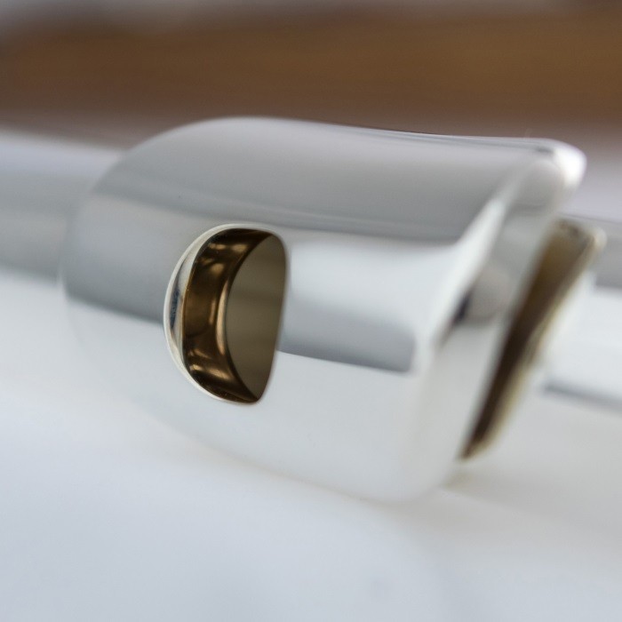 Srebrna (próby 958) głowa do fletów profesjonalnych - srebrna płytka próby 925, złoty 14K kominek.
