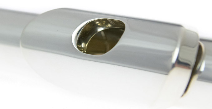 Srebrna (próby 958) głowa do fletów profesjonalnych - srebrna płytka próby 925, srebrny kominek próby 990.