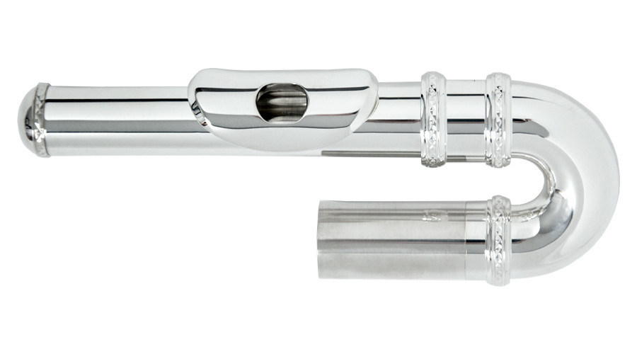 Posrebrzana, zakrzywiona głowa ze srebrną płytką ustnikową i kominkiem do fletu poprzecznego.