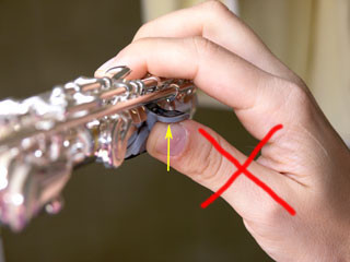 Podpórka pod prawy kciuk do fletu poprzecznego. Pomaga ustawić kciuk w odpowiednim dla prawidłowego podparcia miejscu.
