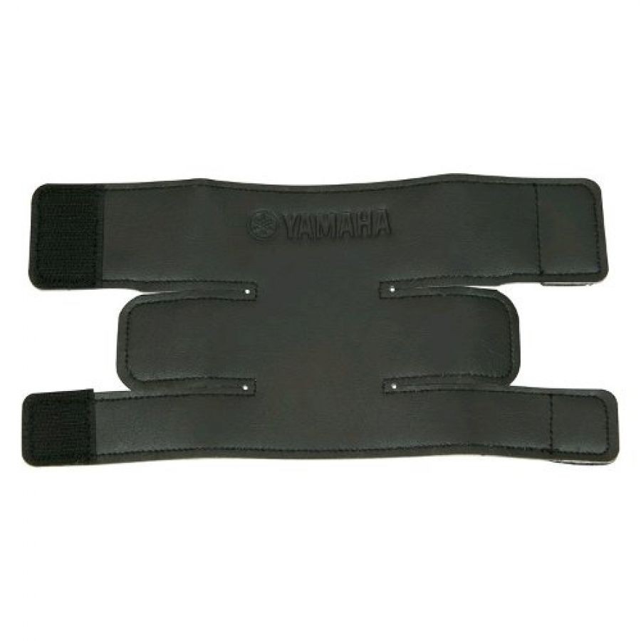 Skórzany ochraniacz na tłoki zapinany na rzep w kolorze czarnym.