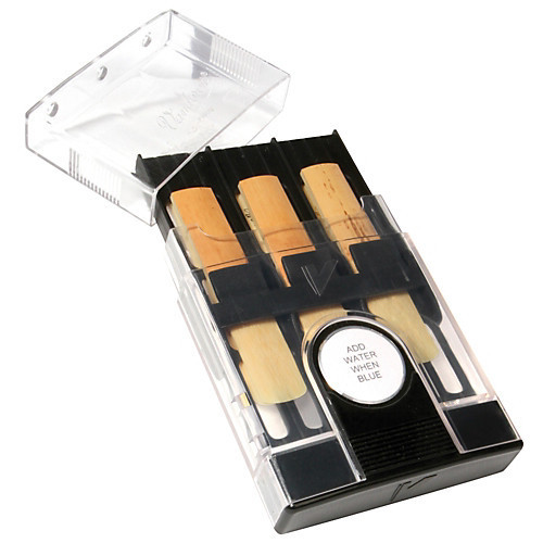 Pudełko na 6 sztuk stroików do saksofonu tenorowego, barytonowego lub klarnetu basowego. wyposażone jest w specjalny wskaźnik wilgotności aby przechowywać stroiki w optymalnych warunkach wilgotności powietrza.