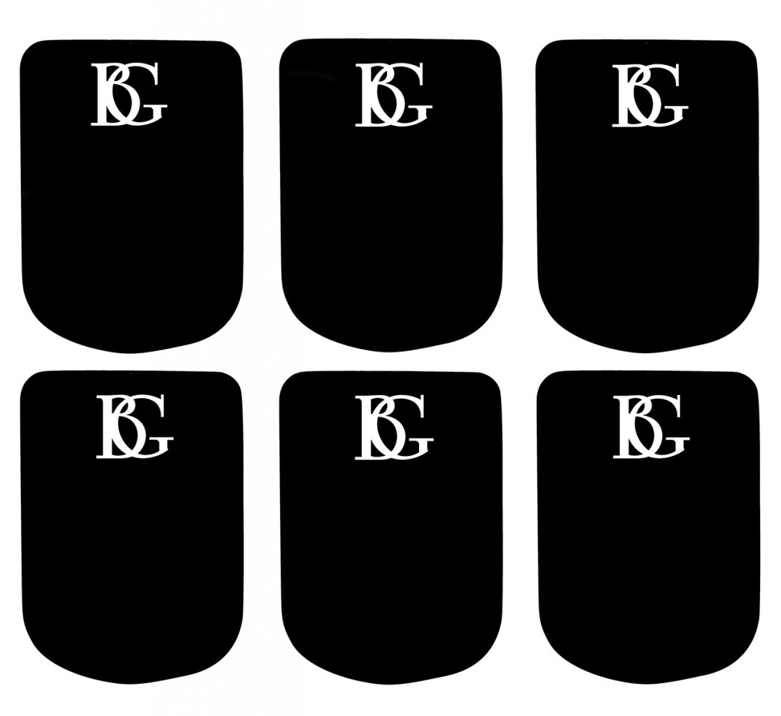 Naklejki na ustnik czarne, małe, grubość 0,8 mm – w komplecie 6 sztuki.