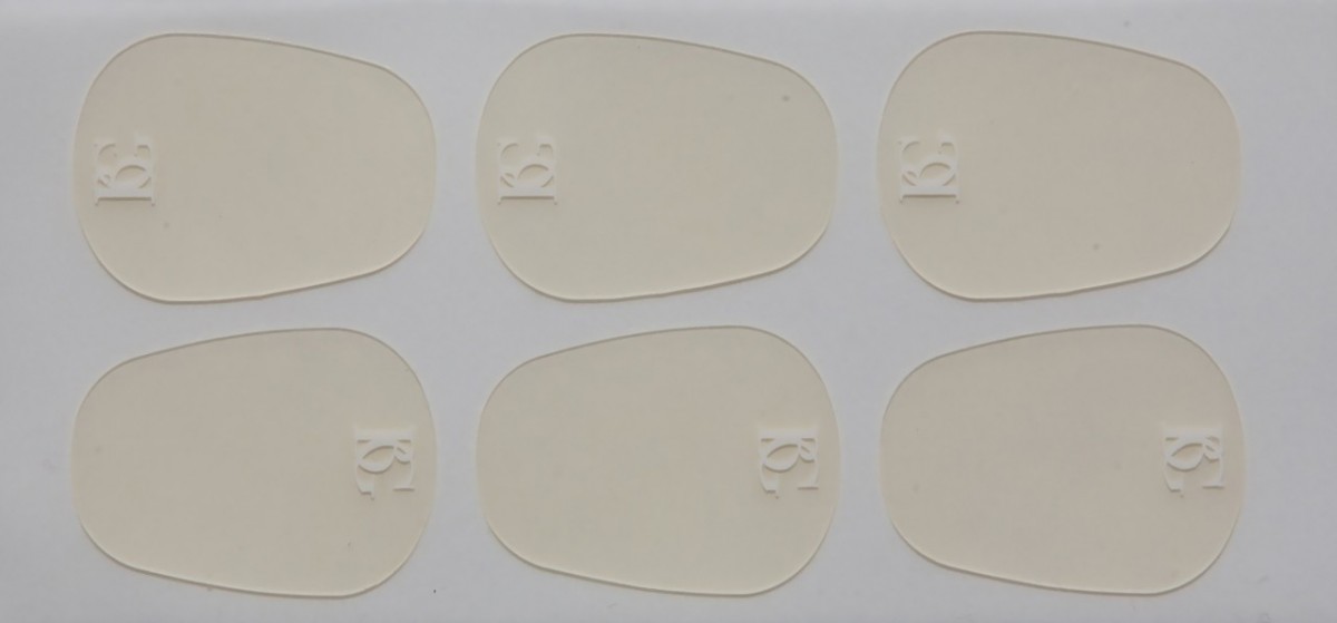 Naklejki na ustnik przeźroczyste, duże, grubość 0,4 mm – w komplecie 6 sztuki.