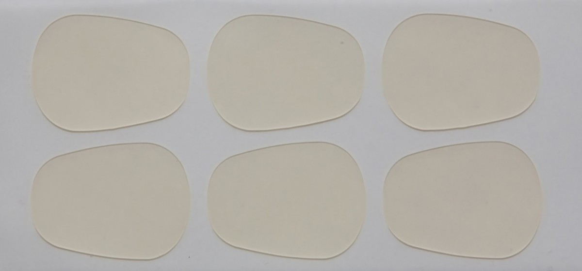 Naklejki na ustnik przeźroczyste, duże, grubość 0,9 mm – w komplecie 6 sztuki.