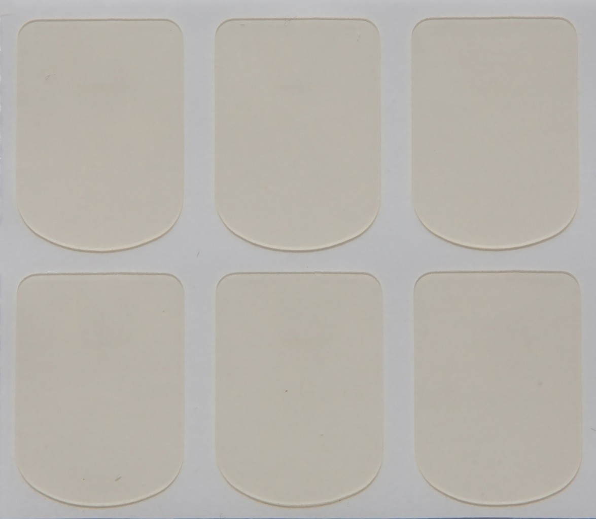 Naklejki na ustnik przeźroczyste, małe, grubość 0,9 mm – w komplecie 6 sztuk.