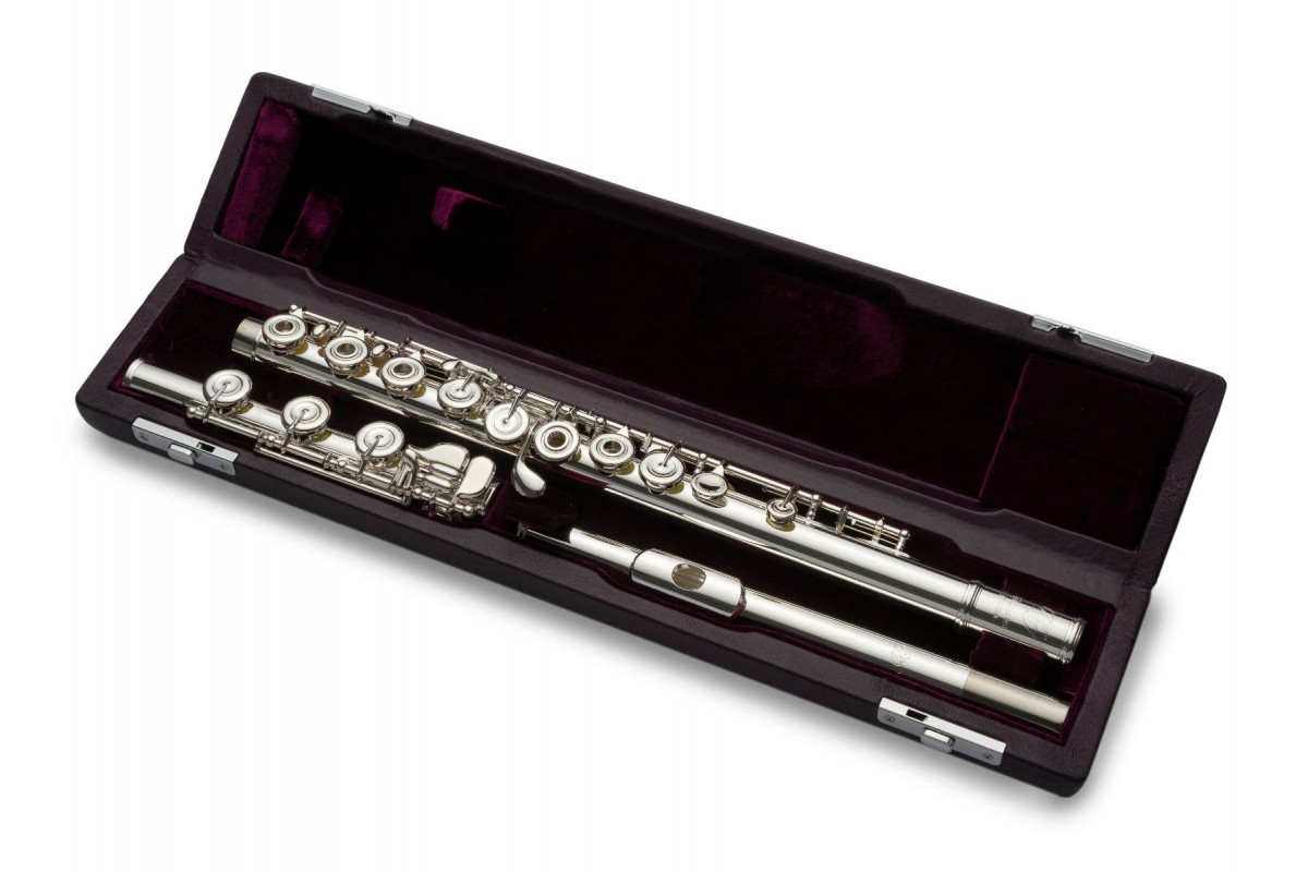 Model dla zaawansowanych, posrebrzany ze srebrną głową, otwarte klapy, E-mechanika, wysunięte G (offset), stopka H. W komplecie futerał, pokrowiec, zatyczki do klap, oraz akcesoria czyszczące.