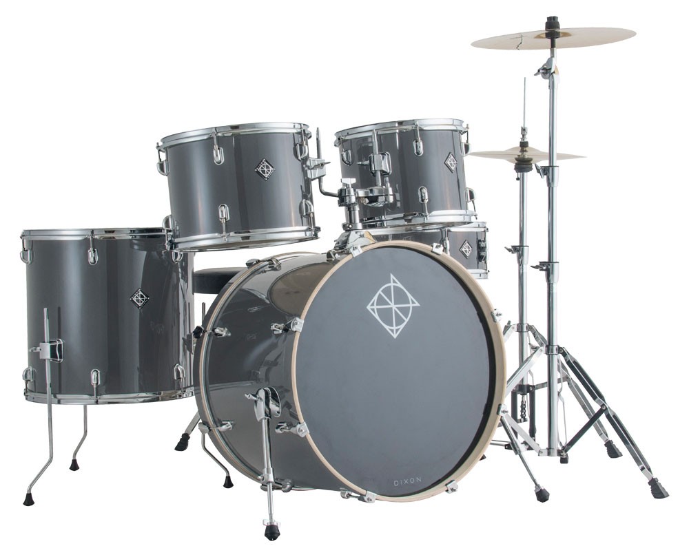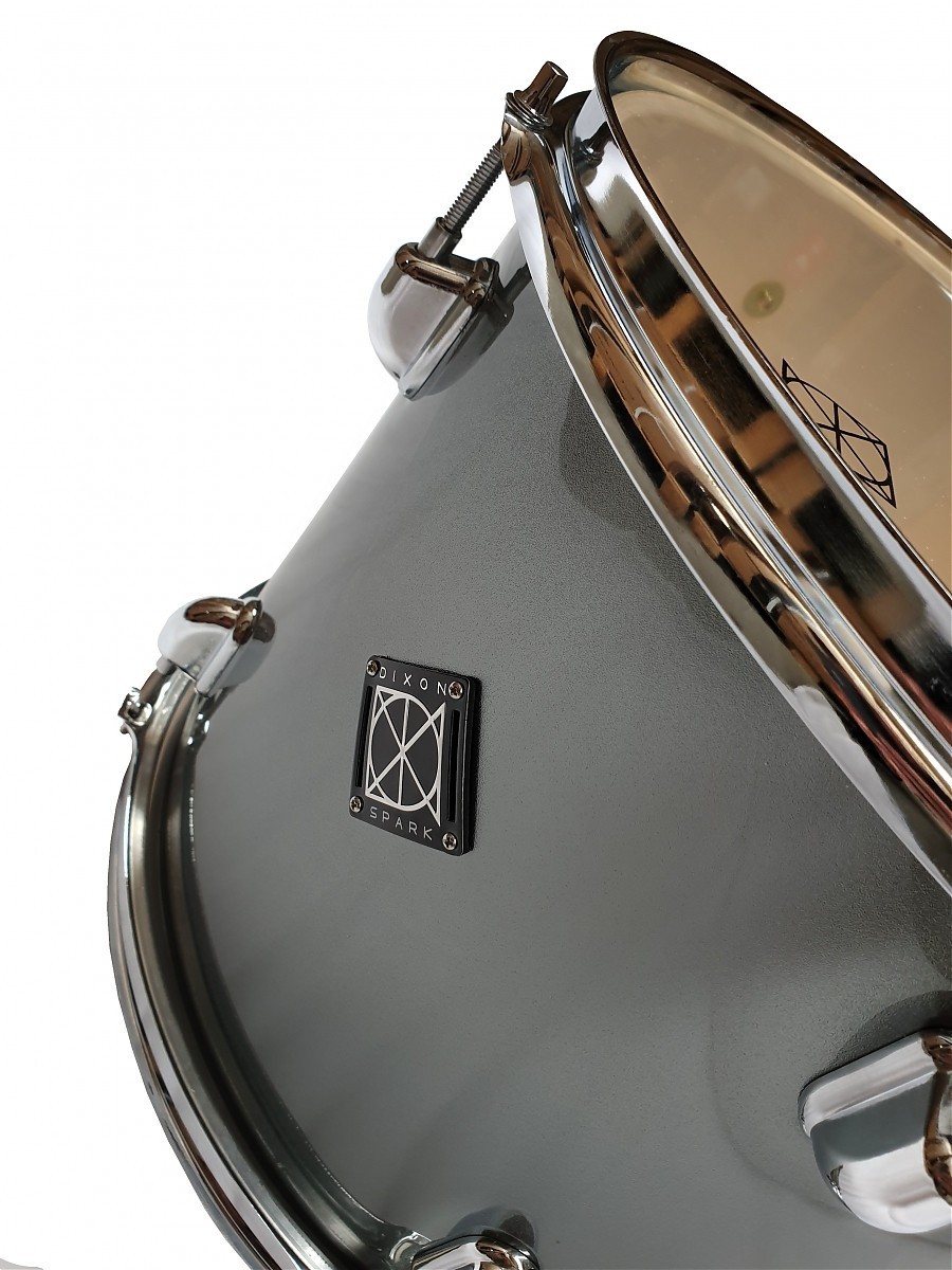 PODSP 522 (CGM) Chrome Gun Metal - zestaw perkusyjny z serii Spark. Korpus: 6 warstw. Materiał: topola 6,8mm. Wykończenie PVC. Chromowany hardware (Statyw prosty na talerz, statyw hi-hat, statyw na werbel, stopa i stołek). Model składający się z 5 części - Bass Drum: 18" x 22", Tom tom: 9" x 12", Tom tom: 10" x 13", Floor tom: 16" x 16", Werbel: 5.5" x 14". Talerze - Hi-Hat 14", Crash 16".