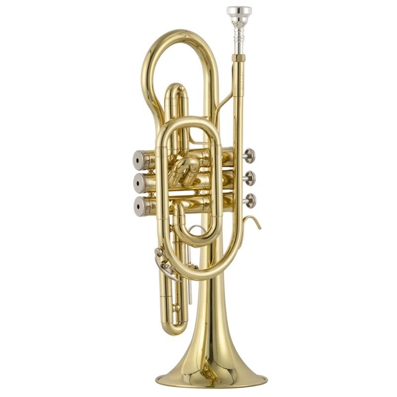 strój Bb, lakierowany, menzura: ML .450" - 11,55 mm, roztrąb: Ø 4 7/8" - 123 mm. W komplecie futerał typu plecak oraz ustnik.