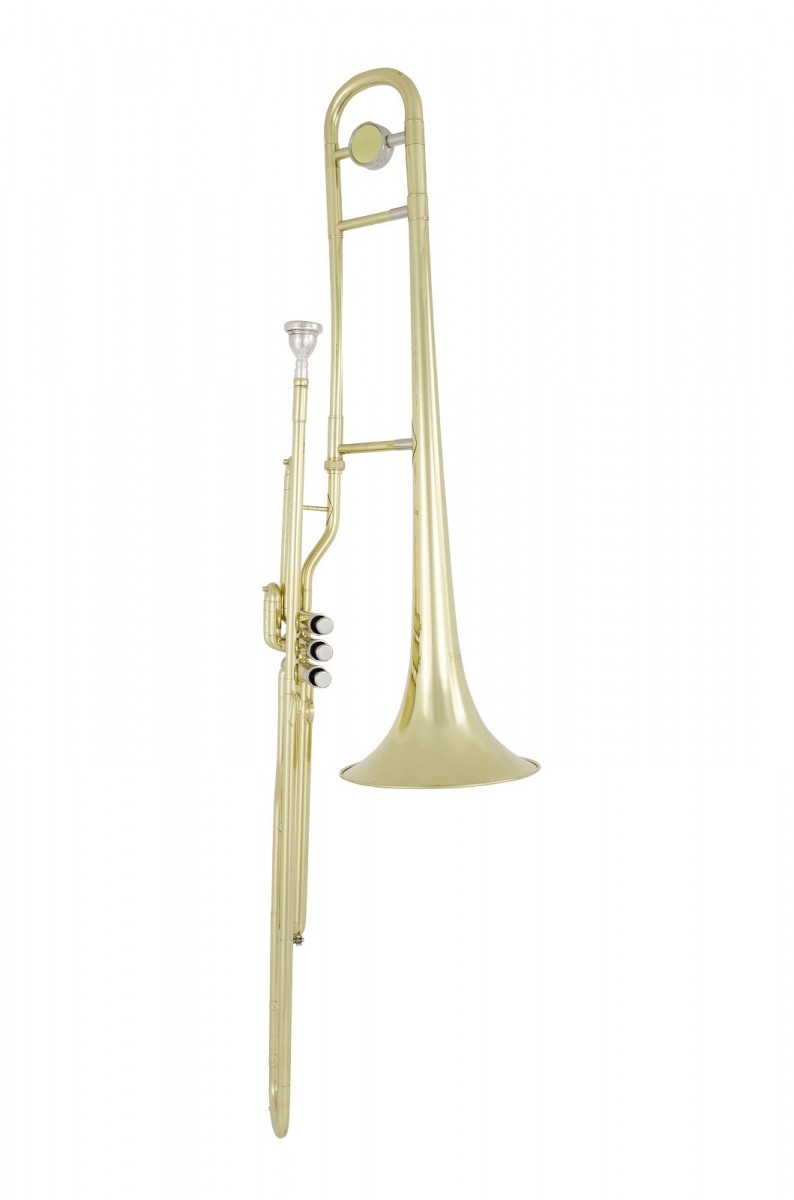 puzon tłokowy, strój Bb, lakierowany, krąglik strojeniowy z żółtego mosiądzu, tłoki z nowego srebra, menzura .488' - 12,4 mm, roztrąb Ø 8" - 203 mm, w komplecie: futerał i ustnik