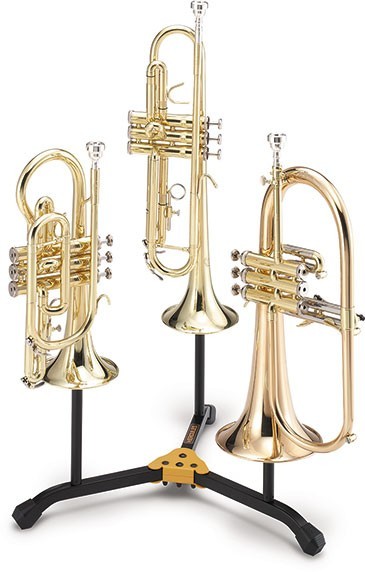 Wysokiej jakości potrójny statyw na trąbki, kornety, flugelhorny.