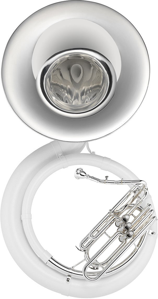 suzafon Bb, 3 wentyle, menzura: 17,45 mm (0.687"), czara: 660 mm (26"), korpus fiberglass, czara mosiężna, posrebrzany, z futerałem