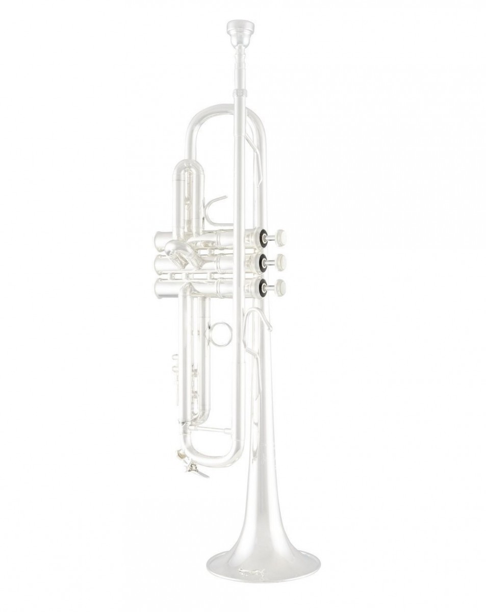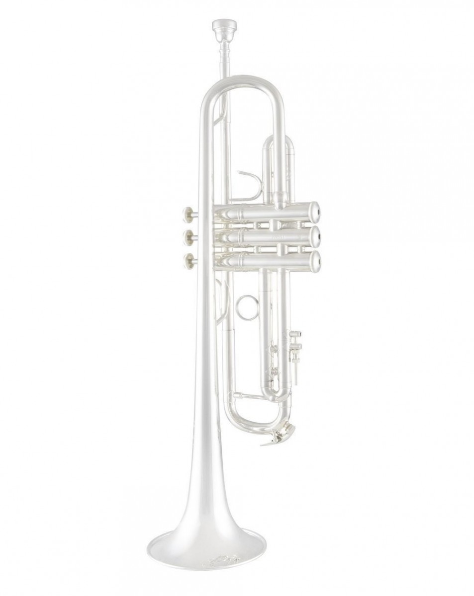 Menzura ML .459'' = 11,66 mm; Korpus Lightweight, roztrąb normalny; Roztrąb Ø 4 13/16'' = 122,24 mm, rurka ustnika typu reversed 25-0; Forma roztrąbu 72; Wentyle monelowe, pierścień pod kciuk, suwak z grawerowaniem; Oryginalny ustnik VINCENT BACH 7C; Prostokątny futerał Deluxe C180; Mosiądz, posrebrzany;