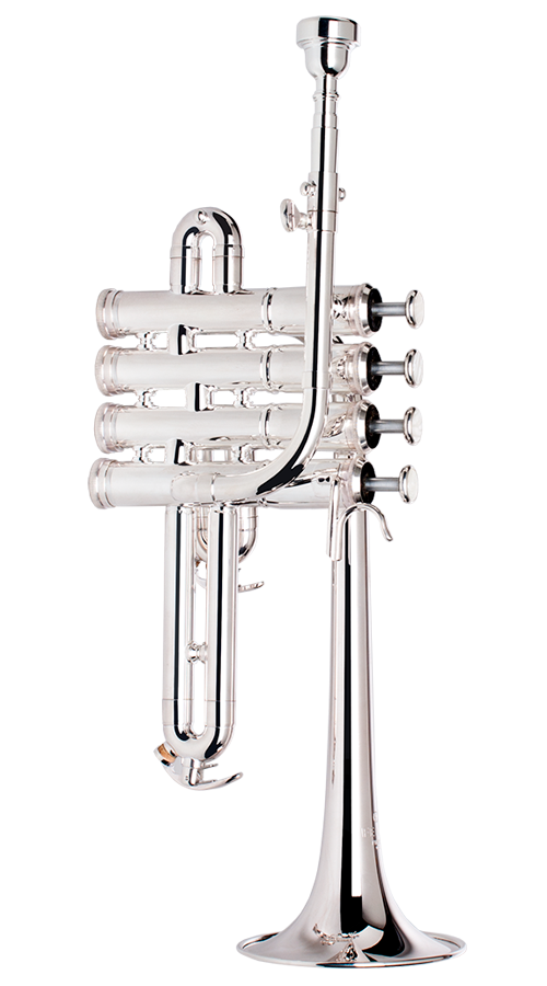 strój Bb/A, posrebrzana, 4 tłoki, menzura: M .445" - 11,4 mm, roztrąb: Ø 3,8" - 98 mm. W komplecie futerał i ustnik 7C.