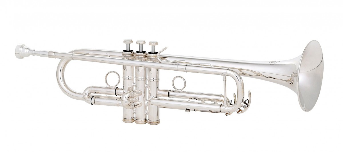 strój Bb, posrebrzana, jednoczęściowy, ręcznie kuty roztrąb z pierścieniem ze stali nierdzewnej, rewersyjna rurka ustnikowa ze złotego mosiądzu, tłoki z monelu, menzura: ML .461" - 11,70 mm, roztrąb: Ø 4,92''- 125 mm. W komplecie futerał i ustnik 7C.