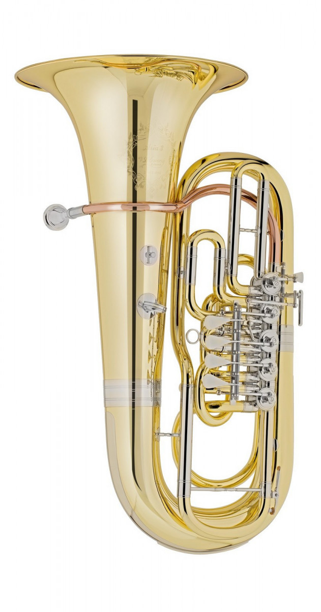 tuba F, rozmiar 4/4, 5 wentyli (4+1), menzura: 18,2 mm (.717“) do 19,2 mm (.756“), czara: 400 mm (15,7“), żółty mosiądz, rurka ustnikowa: różowy mosiądz, lakierowana, model Aria 3