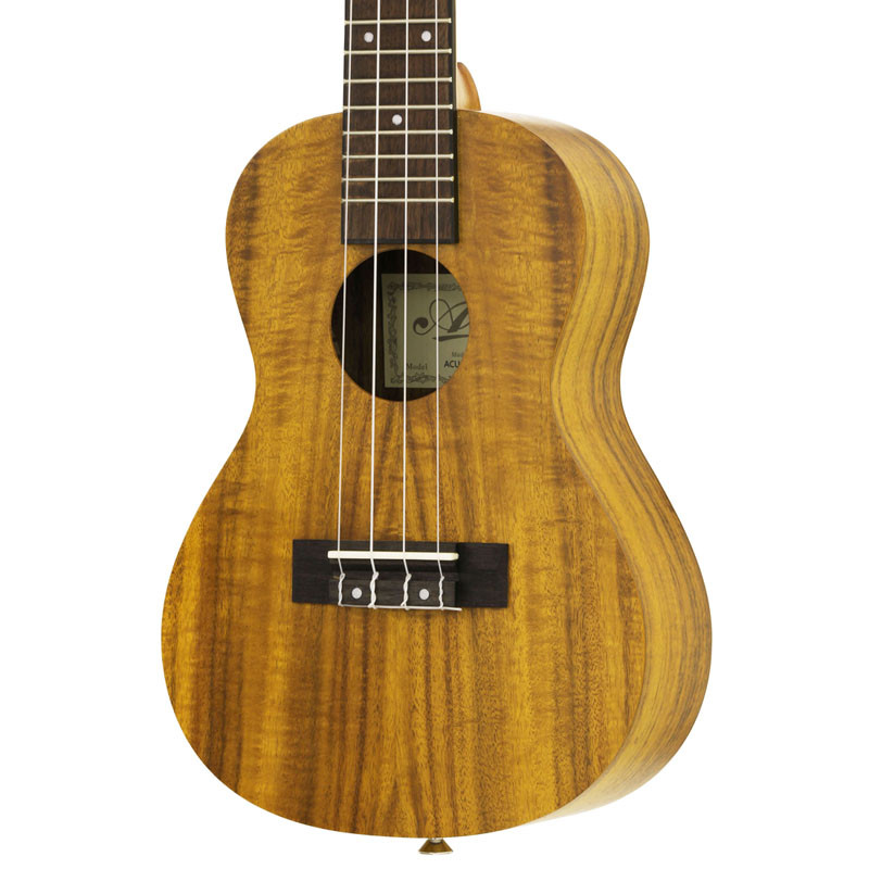 Ukulele koncertowe - Aria ACU-1K. Korpus: Koa. Boki i tył: Koa. Gryf: Okume. Podstrunnica: orzech. Ilość progów: 18. Mostek: orzech. Siodełko i strunnik: kość (Bone). Szerokość na pierwszym progu: 38 mm. Maszynki otwarte: Open Gear. Matowe wykończenie: Matt.