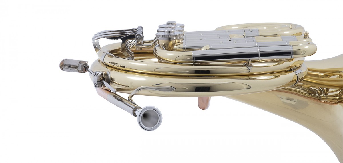 waltornia pojedyncza, strój Bb, roztrąb 210 mm, rurka ustnikowa ze złotego mosiądzu, regulowany uchwyt pod kciuk, lakierowana, waga jedynie 1,6 kg. W komplecie futerał (z możliwością noszenia na plecach) oraz ustnik.